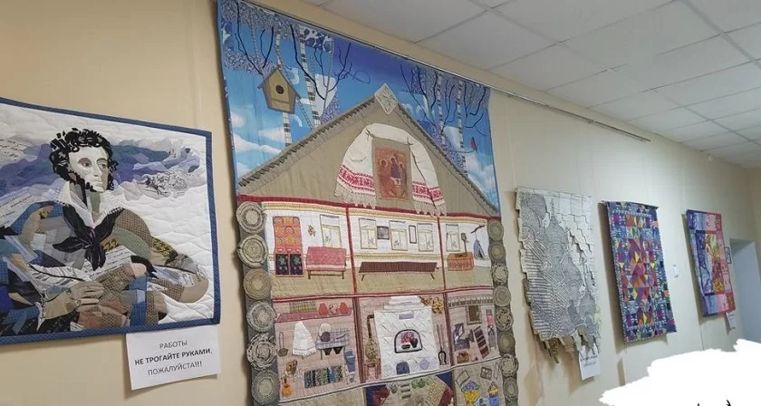 Экспозицию, как подарок на юбилей школы, организовала ассоциация мастеров лоскутного шитья России «ДУША РОССИИ». На открытии мастера презентовали свое творчество с помощию видеоролика, продемонстрированного на экране «Всероссийского виртуального концертного зала», открытого в школе по нацпроекту «Культура».