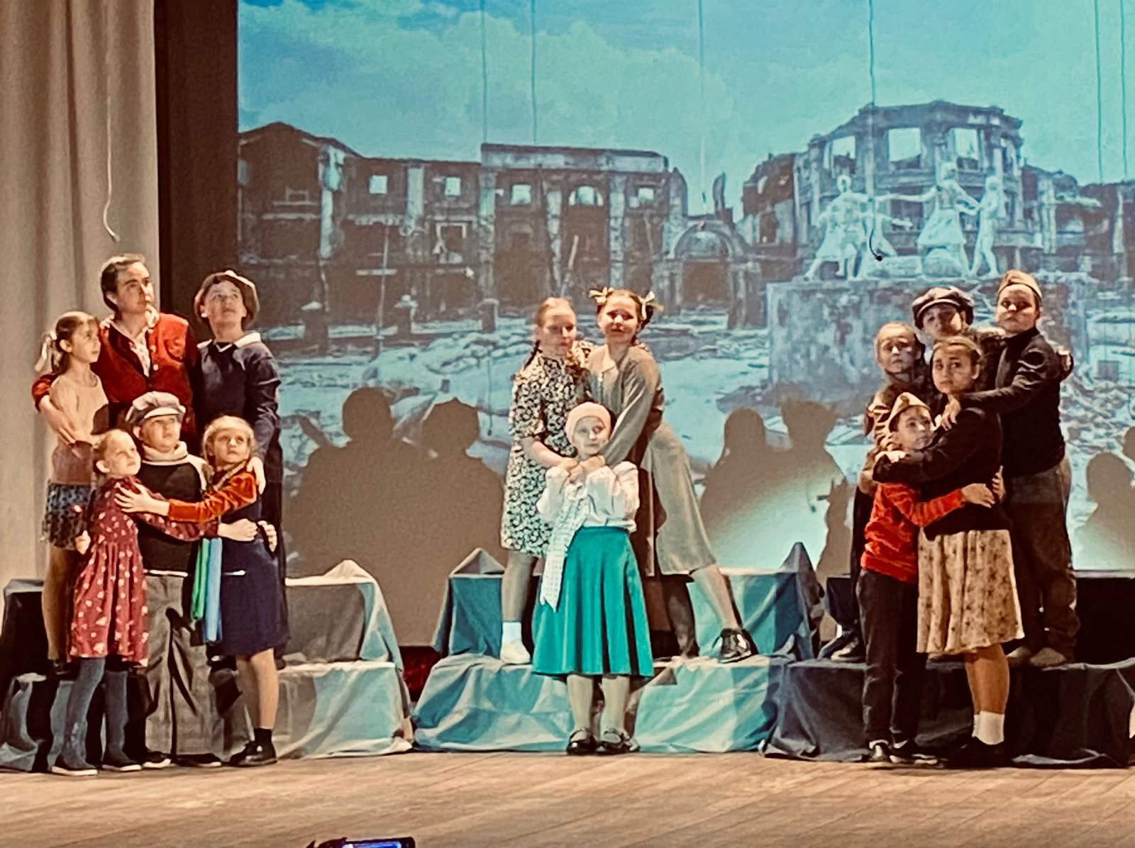 Под руководством режиссёра Елены Шлямневой юные актёры подготовили и исполнили стихи известных поэтов: Рождественского, Михалкова, Плецковского, Барто. Мальчишки и девчонки эмоционально и доходчиво донесли до зрителей то, как рано повзрослели их сверстники военной поры. Как много они хлебнули горя и сколько тягот вынесли на своих хрупких плечах. Рассказали, как дежурили в госпиталях, собирали урожай, выпускали боеприпасы, как ждали отцов. Как пришли в опустевшие цеха заводов и трудились в полях, заменив собой ушедших на войну взрослых. Как терпели голод и холод, вкладывая все свои маленькие силы в большое дело общей Победы над врагом.