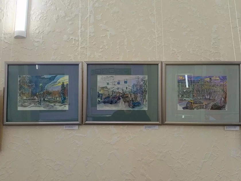 «Если с работами Антона знакомы многие, его выставки проходят с 1990-х годов, то работы Александры являются чем-то новым для нас. Художница выражает себя и в академической живописи, и в современных материалах. В ее практике – рисунки маркерами и линерами, которые она делает, выходя на пленэры в город. Графика Александры – многоцветная, наполненная деталями, за что цепляется глаз. У Антона – более строгая и четкая, она фокусируется на достопримечательностях», – говорит Эмилия Кузина, библиотекарь краеведческо-информационного центра и куратор выставки.