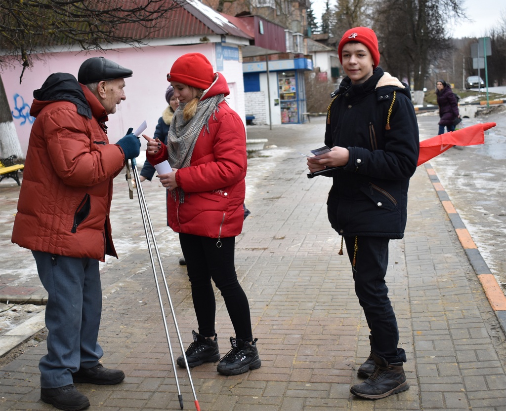 – Наш совет старшеклассников организовал беседу с учащимися и представил образец блокадного хлеба. Ребята из младших классов с интересом рассматривали 125 грамм хлеба и с трудом представляли себе, как этого кусочка людям хватало на целый день, – рассказала заместитель президента ученического совета старшеклассников Полина Прохоровская.Члены юнармейского отряда «Феникс» на центральной улице Сухиничей раздавали жителям и гостям города информационные листовки. С хронологией событий блокадного Ленинграда, с нормами выдачи хлеба рабочим, служащим и иждивенцам можно было познакомиться на информационном стенде, подготовленном ребятами.