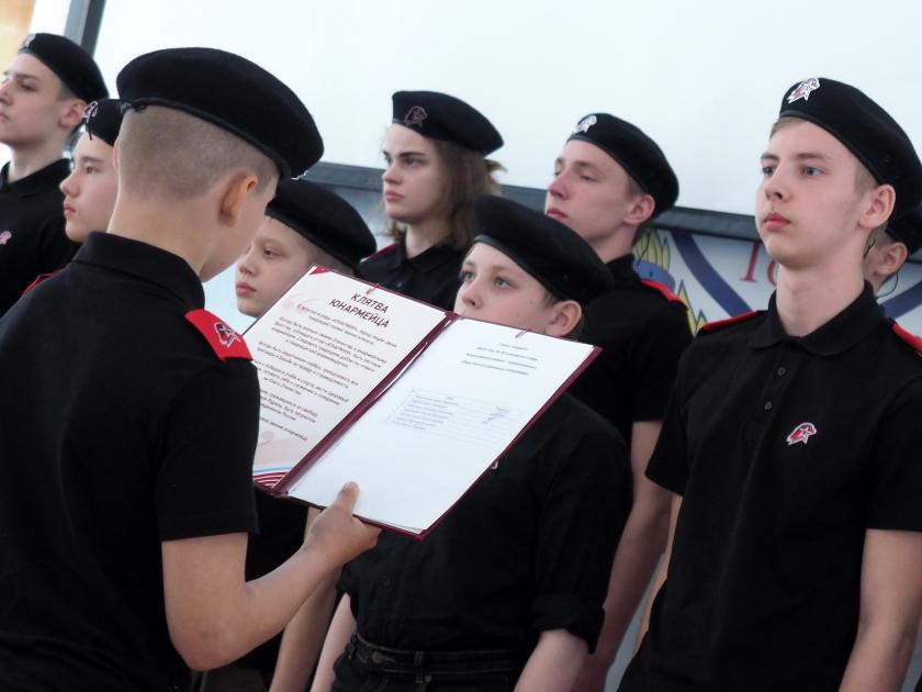 Сегодня приняли присягу 15 учеников от начальных до старших классов 50-й школы, среди них - три девочки. Новобранцы заметно волновались, когда произносили слова клятвы и обещали быть верными отечеству, защищать слабых, стремиться к успехам в учёбе спорте, вести здоровый образ, чтить память героев.