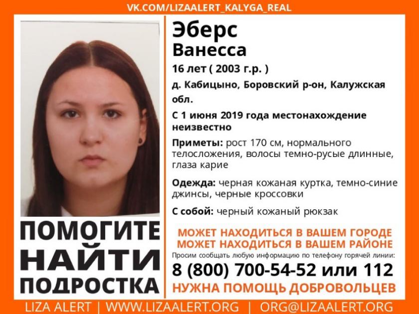 В поисково спасательном отряде "Лиза Алерт Калуга" попросили всех, кто располагает информацией о местонахождении Ванессы Эберс, звонить по телефонам (800)700-54-52, 112.