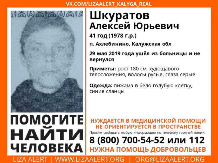 Приметы Алексея Шкуратова: рост 180 сантиметров, худощавого телосложения, волосы русые, глаза серые. Был одет в бело-голубую клетчатую больничную пижаму, синие сланцы. Нуждается в медицинской помощи.