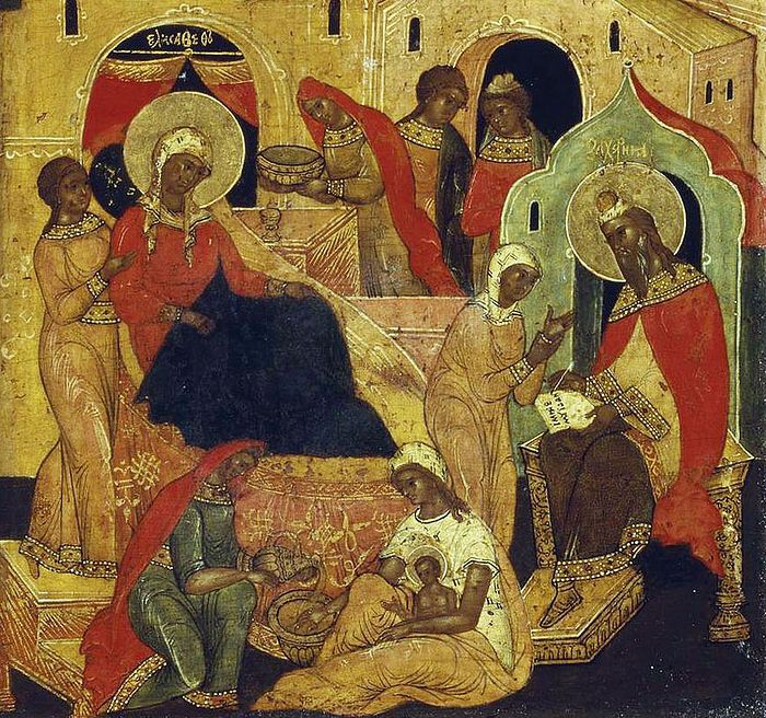 Согласно Евангелию, рождение произошло на полгода раньше Иисуса, его родственника. Отец Иоанна все еще оставался немым, и когда Елисавета пожелала дать сыну указанное ангелом нетрадиционное для своей семьи имя Иоанн («Яхве (Бог) смилостивился»), родственники потребовали от отца подтвердить его письменно.