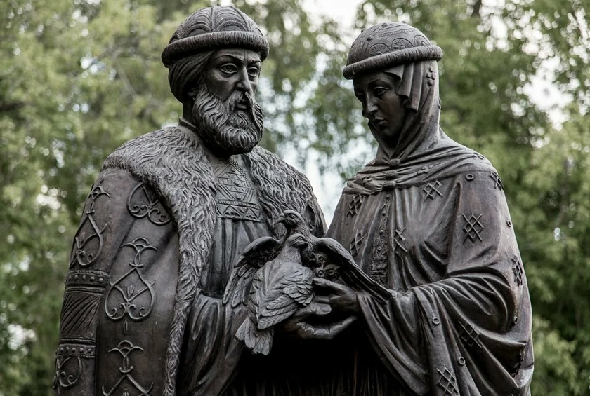 Когда он наследовал княжение после брата, бояре не захотели иметь княгиню простого звания, заявив ему: «Или отпусти жену, которая своим происхождением оскорбляет знатных барынь, или оставь Муром». Князь взял Февронию, сел с ней в лодку и отплыл по Оке. Они стали жить простыми людьми, радуясь тому, что вместе, и Бог помогал им.