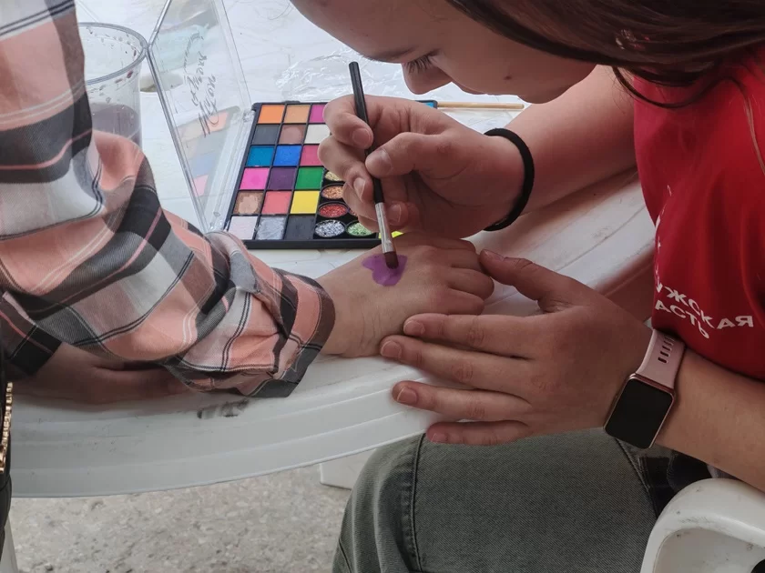 Сегодня, 1 июня, на сцене возле Инновационного культурного центра выступали юные артисты. Поблизости, у специальных стендов, проходили мастер-классы по аквагриму, спортивные мероприятия. На них можно получить приз за участие. Неподалеку у импровизированного шатра ребята играли в настольные игры с председателем «Движения Первых» в Калуге Денисом Мироновым.