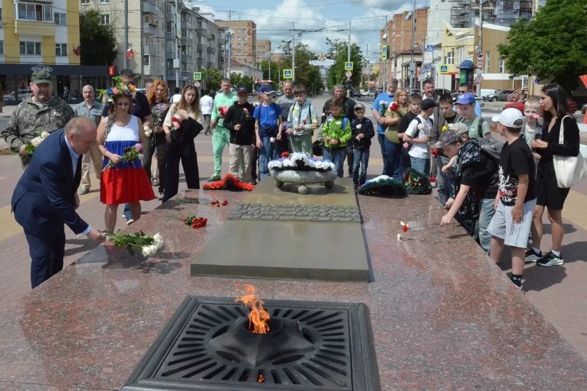 Конечной точкой автопробега стала площадь Победы. Его участники вместе с детьми возложили цветы в Вечному огню и почтили память защитников Отечества минутой молчания.