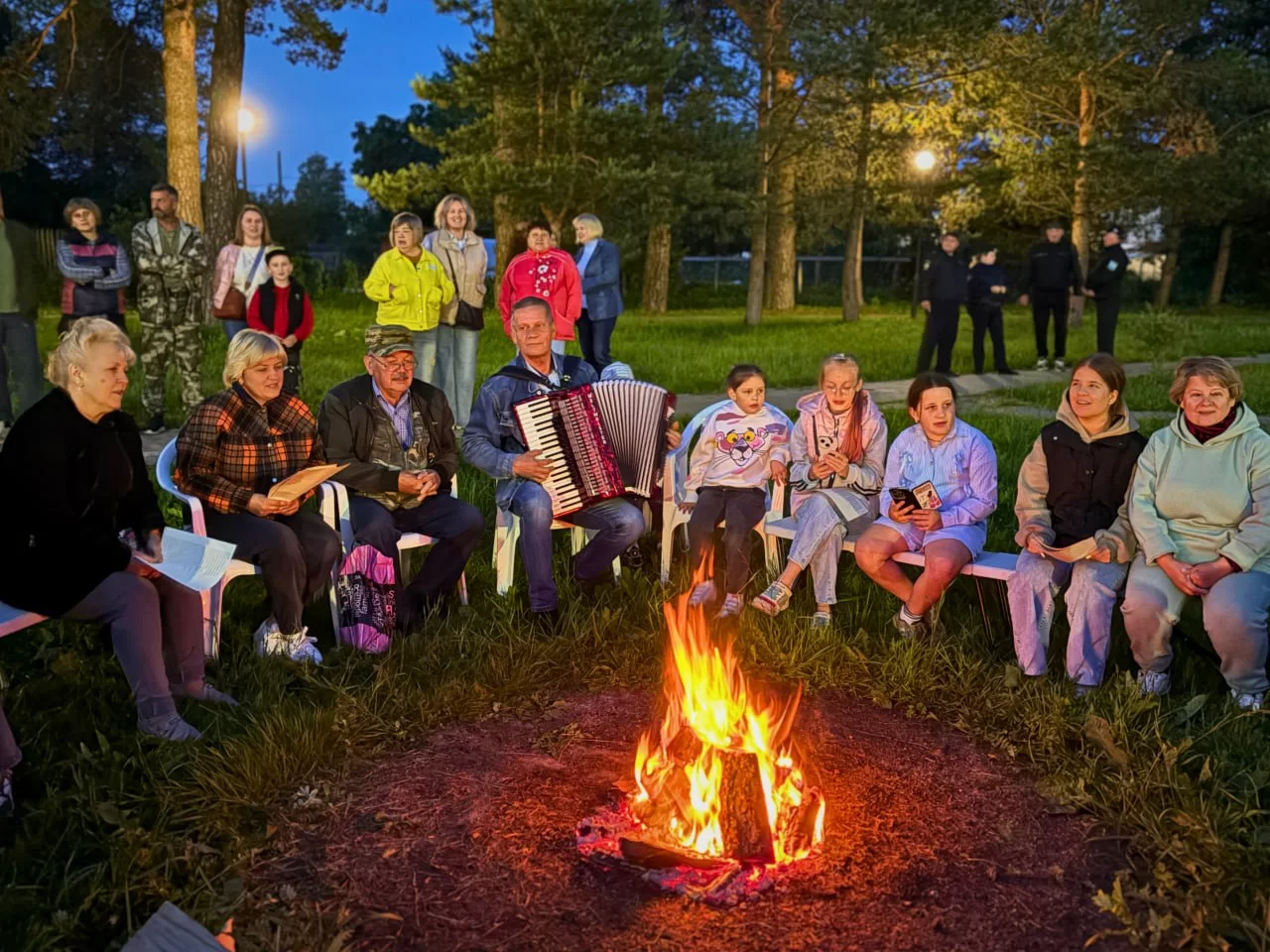 Сразу после этого в парке «Комсомольский» состоялся вечер «Затишье перед боем». У теплого костра звучали песни военных лет, рассказывающие о подвиге солдат, любви к Родине и Великой Победе. Участники мероприятия делились историями о своих родных – фронтовиках и тружениках тыла.