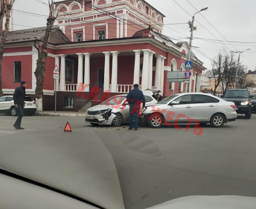 Пользователи соцсетей сообщили, что на перекрестке ул. Ленина и Карпова возле Никитского храма столкнулись Ниссан Альмера и Киа Рио.