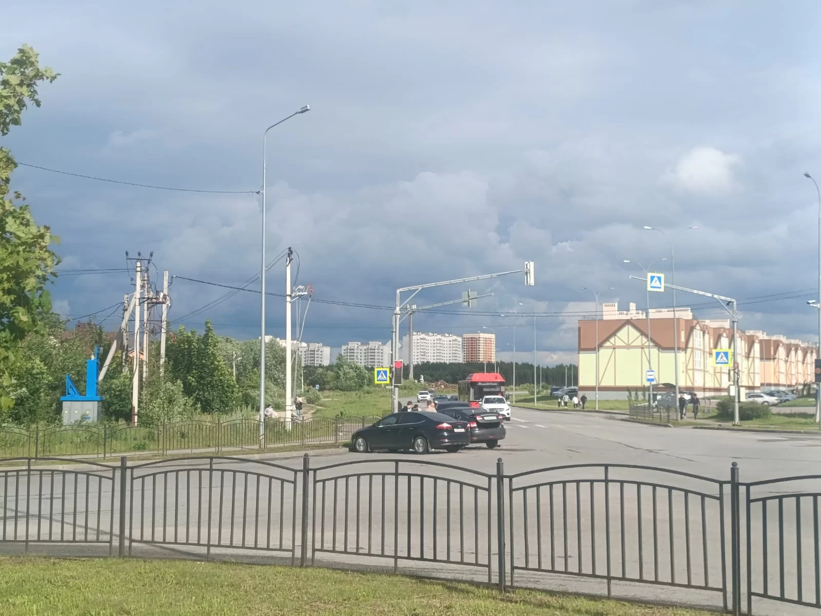 Две легковушки столкнулись на перекрестке улиц Братьев Луканиных и Андрея Алёшина. Одна из них въехала в дорожное ограждение, но пострадала не сильно. У второго авто наблюдаются серьезные повреждения, в том числе мятый капот.