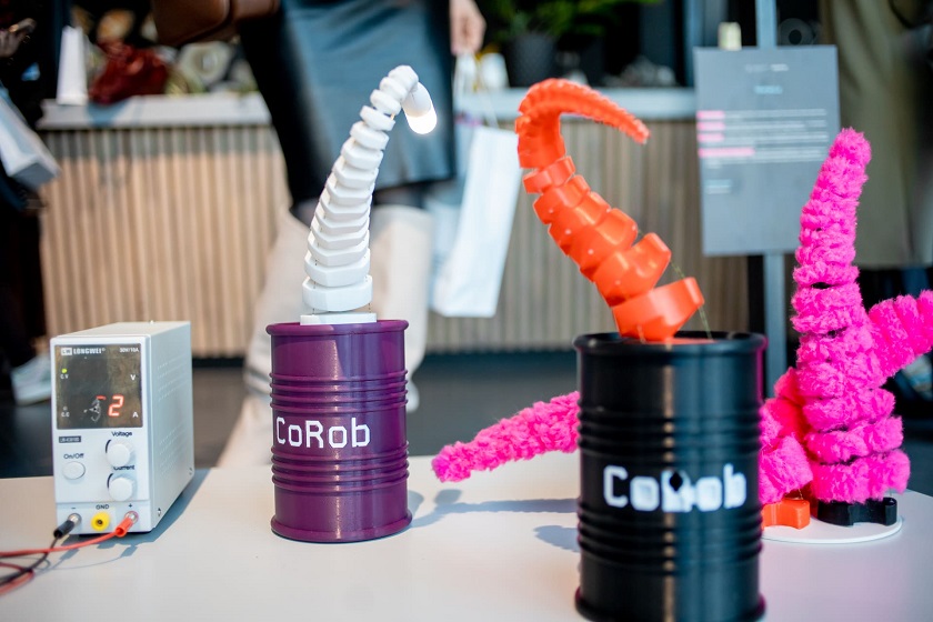 Особое внимание гостей привлекла инсталляция The Glitcher: бюст философа с внутренней полостью, заполненной мерцающим слаймом, который перемешивает робот-манипулятор. По словам авторов работы, она создана для наблюдения за мыслительным процессом и открыта для свободной интерпретации каждым зрителем.