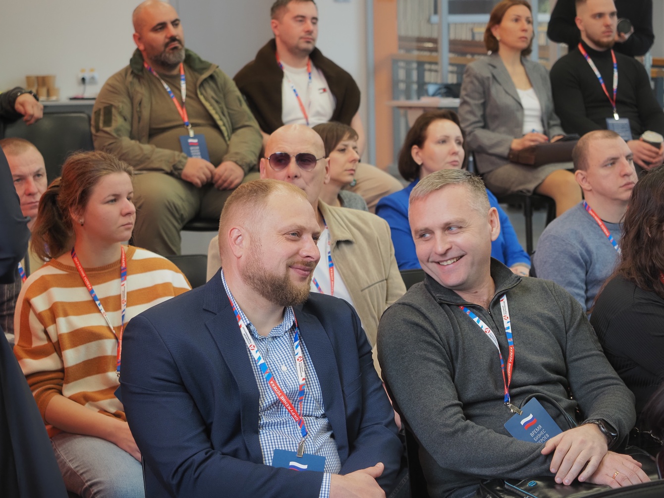 Кроме участников СВО на сессию пришли успешные бизнесмены, чтобы поделиться опытом организации и развития своего дела. Особый интерес вызвали выступления Артура Айвазяна и Сергея Платонова, в недавнем прошлом бойцов СВО, а ныне успешных предпринимателей. На первых порах они получили меры различной господдержки, что позволило удачно стартовать в бизнесе.