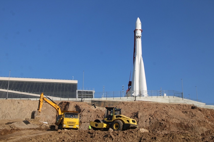 На склоне работает специализированная техника, которая дополнительно укрепляет склон лишней землей. Также рабочие укладывают дренаж. Уже после завершения этих работ начнется работа по благоустройстве и озеленения площадки.