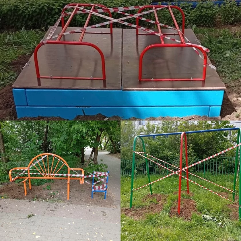 После завершения работ на территориях дворов появятся игровые комплексы, карусели, качели, лавки, песочницы, урны и новое леерное ограждение.