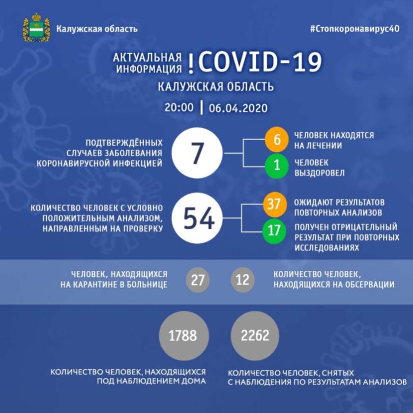 На сегодняшний день зарегистрировано 7 случаев коронавирусной инфекции, 1 человек выздоровел, 6 находятся на лечении.
