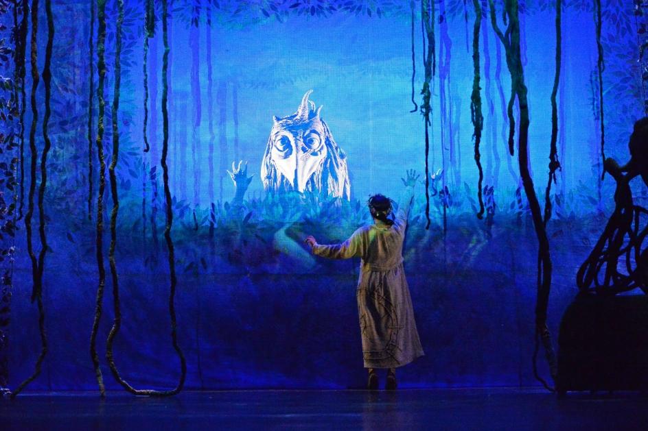 Отраженный в спектакле фантастический мир Аксакова завораживает. В нем звучат старинные инструменты: варган, гусли, калюка, звучный колокол. Отдельного внимания заслуживает изготовленная с большой фантазией кукла Чудища – огромного существа с птичьим клювом и печальными глазами.