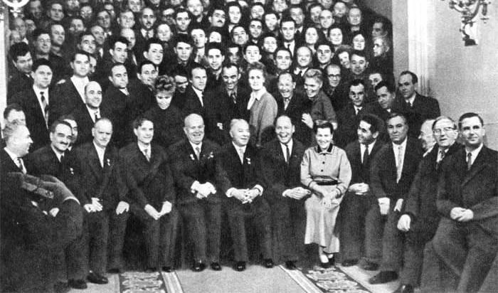 Хрущев на открытии съезда не выступал, только поприветствовал делегатов. Но зато во время приема в Георгиевском зале говорил не менее полутора часов. Мы стоя слушали, потому что стульев не было. Как сейчас говорят, был шведский стол. Кто-то в это время жевал, кто-то выпивал. Речь была эмоциональная, жесткая: