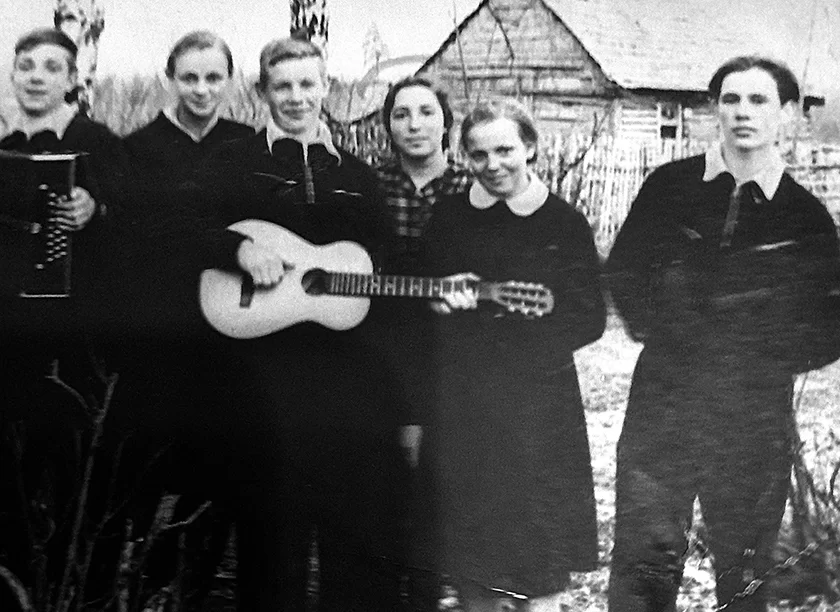 До сих пор стоят перед глазами и согревают душу воспоминания не только танцевальных вечеров, но и наши прогулки по лесу, возле стадиона в Думиничах. Мы бродили часами и болтали о прочитанных книгах, о фильмах, стихах и просто о всякой чепухе. И вдруг осознаем, что заблудились и попали в какую-то чащу.А мой ухажер Вася Тюрин, который родился в лесной сторожке, оказался знатоком леса, знал все приметы. В ответ на мои волнения он спокойно спел мне песню со словами: «Мы в глаза друг другу глянем, руки жаркие сплетем и, куда, не знаем сами, словно пьяные бредем!»