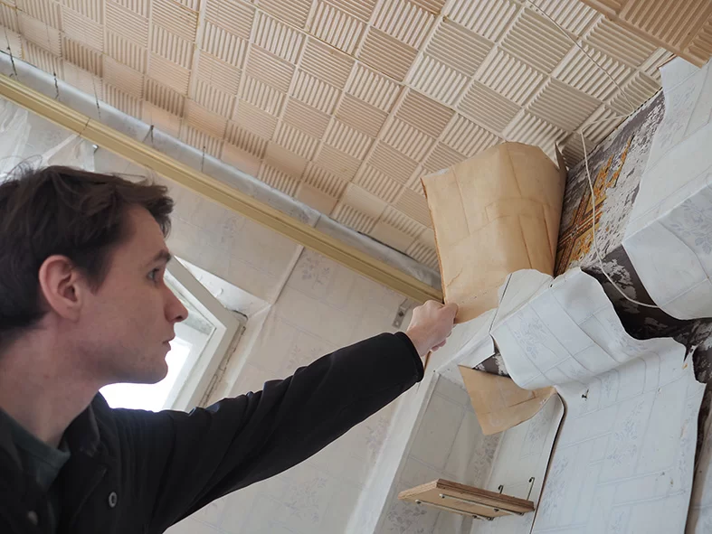 Видя, что от управляющей компании не добиться никаких результатов, Геннадий Лукин был вынужден вновь обратиться за помощью в региональное отделение «Народного фронта». Вместе с экспертами организации журналисты «Калужских губернских ведомостей» побывали на месте, чтобы разобраться в ситуации.В «Народном фронте» связались с наследником из квартиры № 14. Молодой человек провел нас в свою квартиру и все показал. Водоснабжение действительно везде перекрыто, трубы и стояк сухие. Но весь потолок и стены в квартире Дениса залиты, обои отваливаются. Однако подтеки идут совсем с других сторон, далеко от труб. В чем же дело? Кровля протекает?