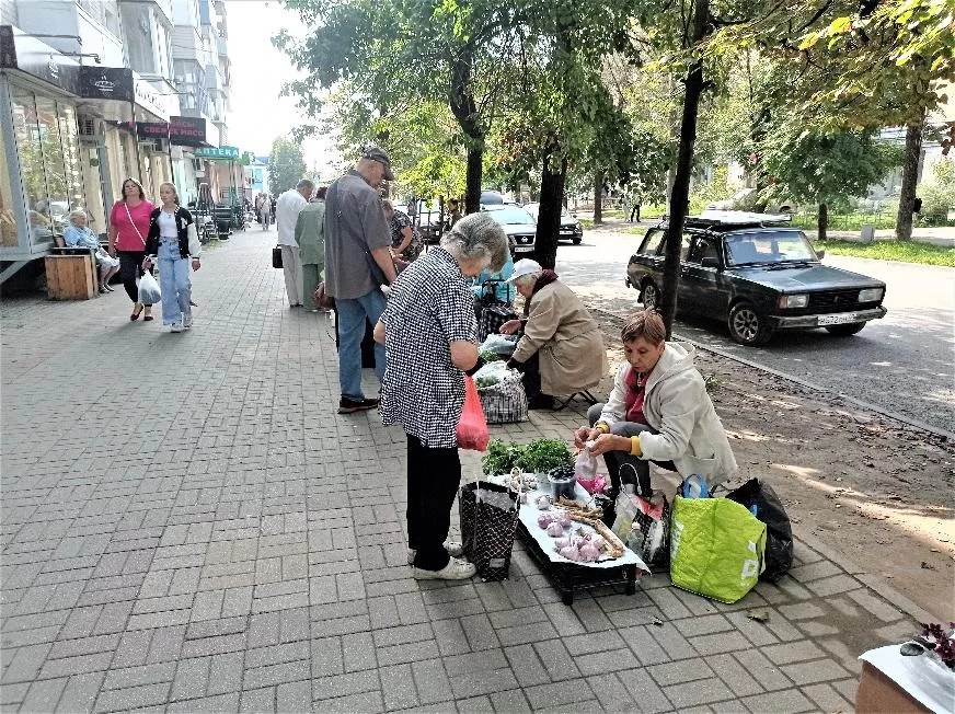 К сожалению, слово «сгорбленный» очень характерно для садоводов-дачников, которые торгуют на улицах Калуги. Понятно, что дачник со своими морковками-помидорками по уровню благосостояния не может стать в один уровень с предпринимательским сообществом, входящим в Агентство развития бизнеса. Садоводы приходят торговать самостоятельно, стихийно, а предприниматели собраны в серьезное профессиональное сообщество. Одни могут себе позволить потратиться на достойные прилавки для торговли, а другие нет.