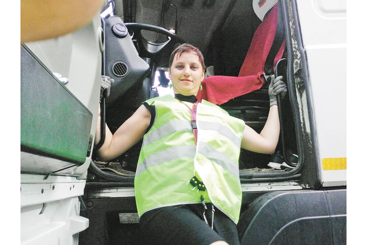 Вот она на фото около огромного тягача, а вот в кабине машины, за рулем. Такое встретишь нечасто!