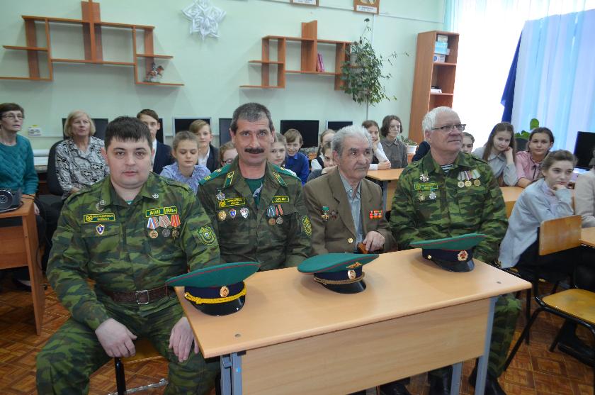 В Панской школе-интернате Малоярославецкого района прошёл урок мужества. В гости к школьникам пришли руководитель малоярославецкой общественной организации «Пограничное братство» Николай Лукьянов, участник Великой Отечественной войны, подполковник в отставке Алексей Кораблин, ветераны погранвойск Михаил Страйхар и Денис Иванов.