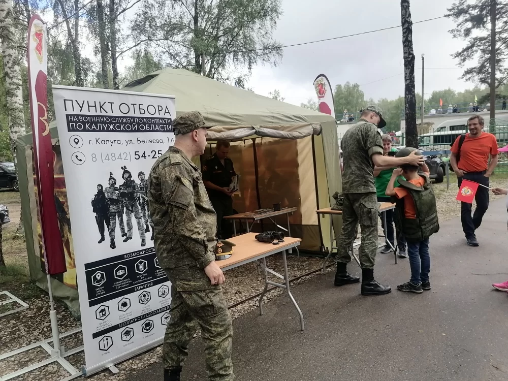 Сегодня на стадионе «Центральный» в Думиничах прошла большая праздничная программа, посвященная Дню строителя и Дню физкультурника. Здесь работали несколько тематических площадок с аттракционами, тир. У палатки пункта отбора на военную службу по контракту можно было получить интересующую консультацию по условиям службы и довольствию.