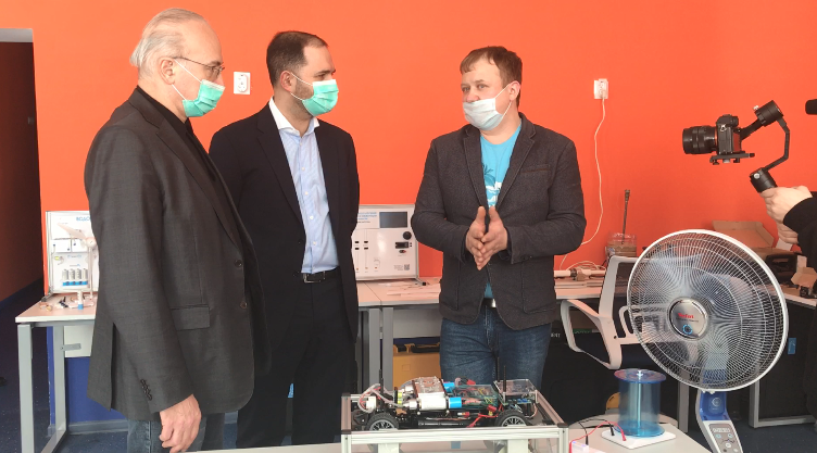 Гостям продемонстрировали высокотехнологичное оборудование, пригласив пройти в кабинеты начального технического моделирования, энерджиквантума, хайтек-цеха и хайтек-класса, интерактивного музея наук. Показали автомобиль-гибрид, который работает на основе водородных аккумуляторов, создание детьми различный изделий с помощью 3D-принтера, использование энергии ветра, интерактивные экспонаты,