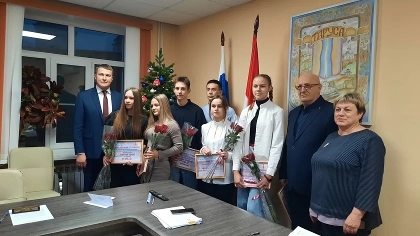 Глава администрации района Михаил Голубев поздравил у новогодней ёлочки и молодых тарусских спортсменов. Воспитанники спортшколы «Лидер» в этом году пополнили копилку достижений наградами самого высокого уровня. Чемпионки России по савату Диана Лобова и Олеся Лохова недавно вернулись из Санкт-Петербурга. С Кубка России по савату девушки привезли «золото» и «серебро». Серебряную медаль завоевал и Мурат Хия. Вместе с ними призёрами России по савату в мае становились Максим Белый, Марина Петрова и Анастасия Полунина. Занимаются ребята у тренера высшей категории Эдуарда Асатряна.