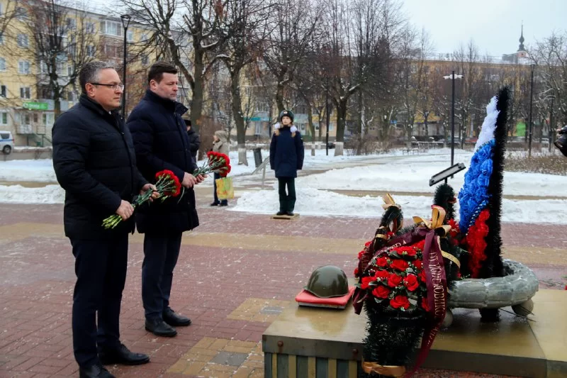 В понедельник, 9 декабря. Городской голова Калуги Дмитрий Денисов и глава городского самоуправления Юрий Моисеев почтили память защитников Отечества на площади Победы у вечного огня.