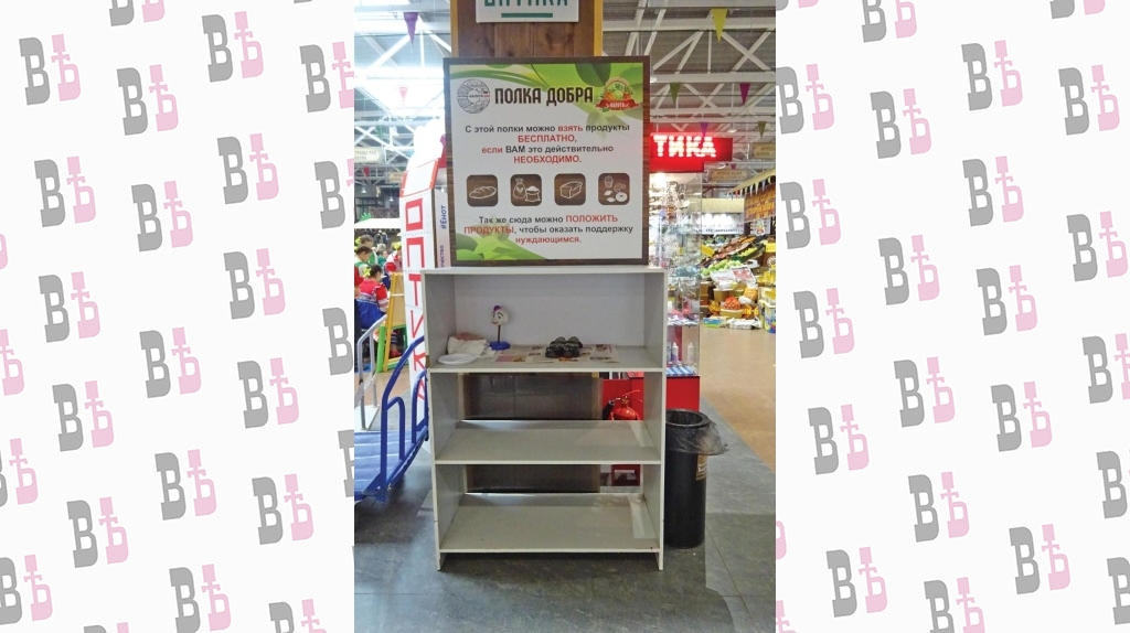Суть акции: размещение продуктовых и непродуктовых товаров с целью благотворительности внутри магазинов в специально отведенных для этого местах. Благотворительность адресована нашим малоимущим землякам.