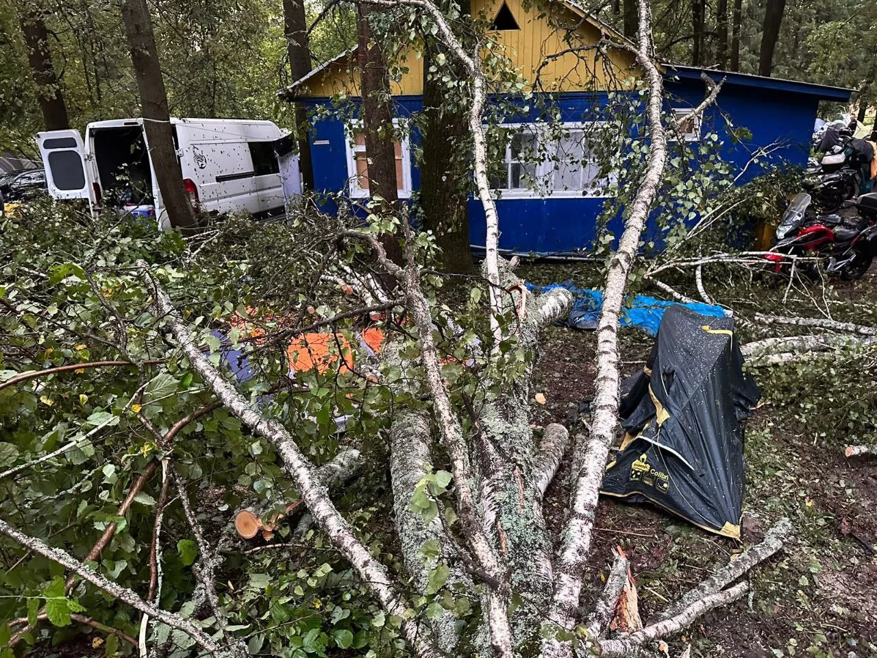 В эти выходные на базе отдыха проходил байкерский фестиваль «Джокер Фест». Отдыхающие проживали в палаточном лагере. В ночь на сегодняшний день гроза и удар молнии повалили деревья, которые упали на палатки с людьми. В следкоме сообщили, что погибли 43-летний мужчина и 6-летняя девочка, четыре человека были госпитализированы с травмами.