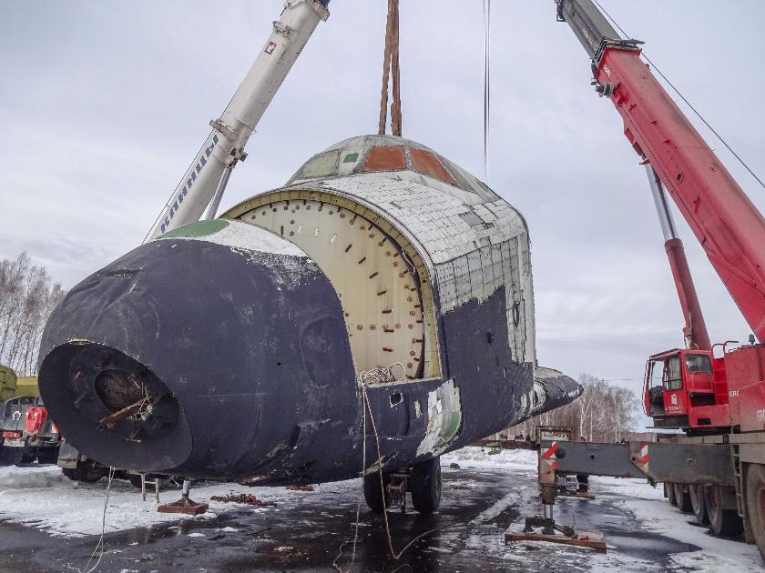 Вторая машина долгое время являлась научно-познавательным аттракционом в столичном парке Горького, а затем – на ВДНХ. Кроме уже упомянутого реконструированного аппарата в Сочи существовал самолет-аналог «Буран БТС-002», перевезенный позже в Германию, в музей техники в Шпайере. Наконец – испытательная модель, которая на долгие годы была оставлена на Тушинском машиностроительном заводе среди других заделов космочелноков. Несколько лет назад планировалось утилизировать этот объект, но благодаря усилиям Героя России, летчика-космонавта Магомеда Толбоева, когда-то входившего во второй состав летчиков «Бурана», корабль был перевезен на аэродром в Жуковском. А уже оттуда выкуплен и перевезен Задорожным в Медынь. Переезд гигантской машины связан в том числе и с необходимостью масштабного ремонта, который как раз возможен в условиях «Военфильма».