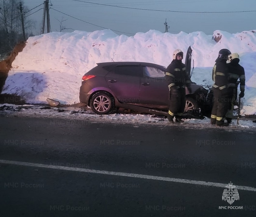 Около половины пятого в спецслужбы поступило сообщения о столкновение автомобилей «Hyundai» и «Mitsubishi» на 11 километре дороги «Калуга – Серпухов». В аварии пострадал один человек, его состояние не утосняется. У корейской легковушки повреждения находятся в передней части: разбиты бампер, крылья, фары, помят капот, это видно по фото, которое предоставила пресс-служба ГУ МЧС России по Калужской области. К ликвидации ДТП привлекались бригада скорой медицинской помощи, сотрудники МЧС и патруль ГИБДД.