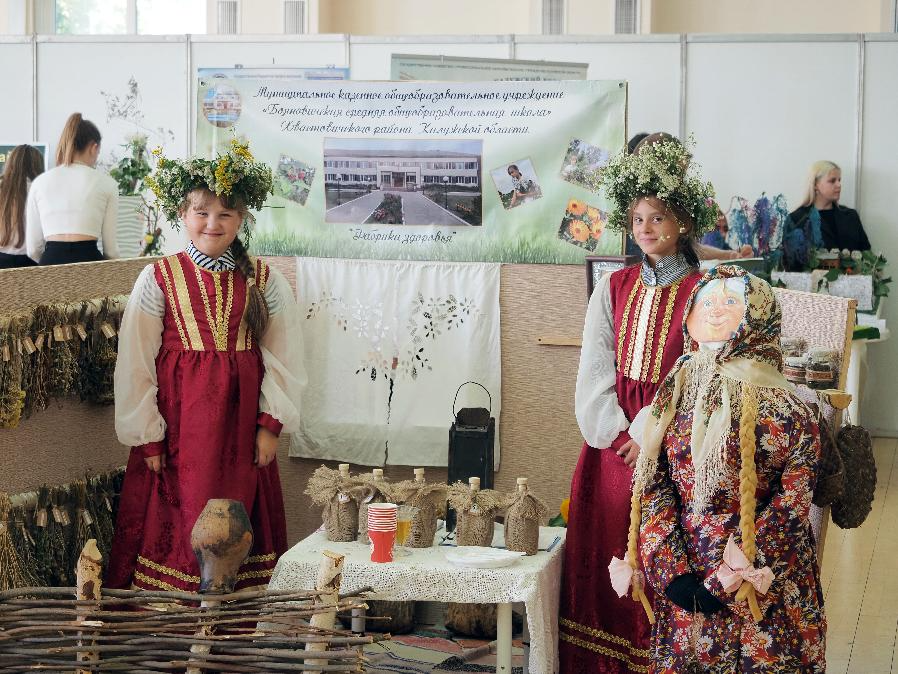 А вот экспозиция Бояновичской средней школы Хвастовичского района. Здесь нас ждет дегустация. Ребята преподносят бесподобный чай, настоянный на таволге. Чтобы подсластить, конечно же, добавляется ложечка меда. Очень вкусно!