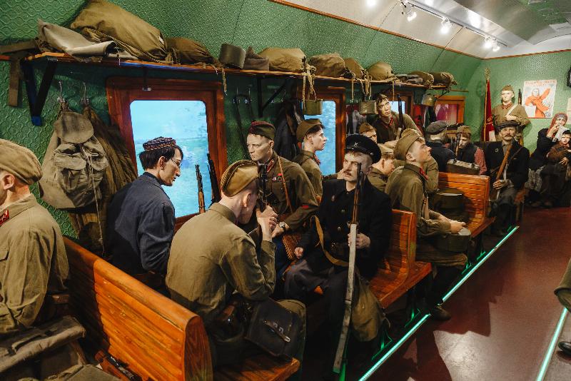 В каждом вагоне поезда-музея представлены драматические события военных лет, исторические факты, судьбы и воспоминания, людей, которые прошли войну. Здесь события мирного времени, воспоминания переживших блокаду и концлагеря, в одном из вагонов молодые солдаты едут на фронт, есть санитарный и банно-прачечный вагоны, часть экспозиции посвящена науке, еще одна окончанию войны, когда защитники возвращались домой.