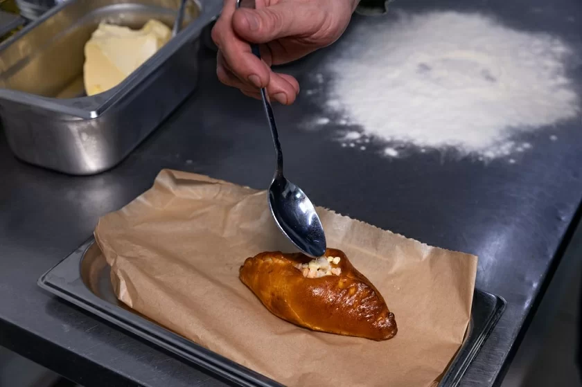 Классическое блюдо в «Калужском меню» - расстегай с рыбой. В русской кулинарной традиции – это румяный пирог с открытым верхом, начинкой из красной рыбы с добавлением лука и яйца. После запекания в него добавляют рыбный бульон и сливочное масло. Расстегаи подавались и в дополнение к блюду, и отдельно – в качестве закуски. Однако у калужского рыбного пирога есть небольшое, но важное отличие от остальных – начинка из красной и белой речной рыбы.