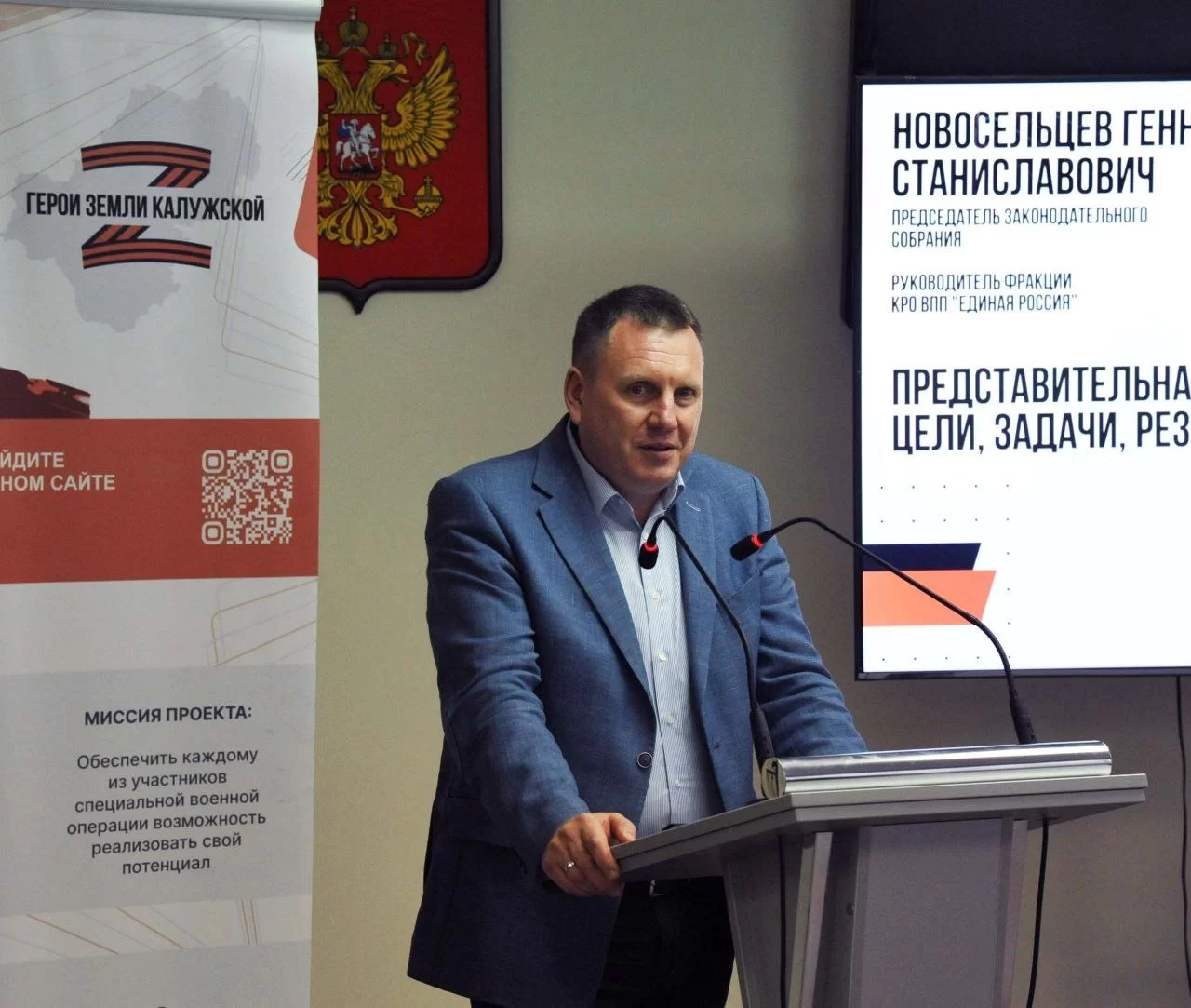 «» «В Законодательном Собрании работают 40 депутатов, они избираются по 20 округам: 20 человек – по одномандатным округам, еще половина - по партийным спискам. На прошлых выборах партия «Единая Россия» получила 29 мандатов. Всего в региональном парламенте представлено 6 партий, и это, пожалуй, самый демократический парламент в ЦФО».Особое внимание спикер уделил законодательным мерам поддержки участников СВО:
