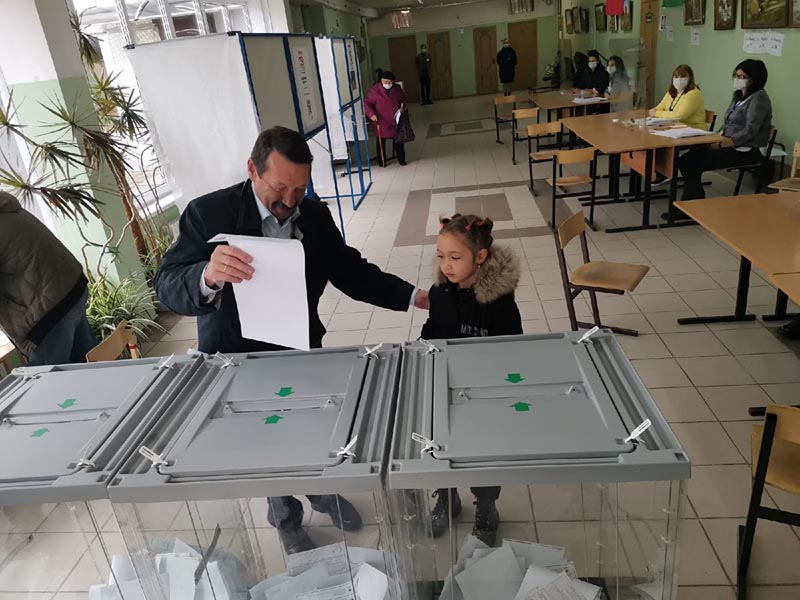 Пришел на избирательный участок вместе с младшей внучкой Варварой. Сегодня проявить свою гражданскую активность очень важно. Мы все вместе определяем наше будущее голосами!