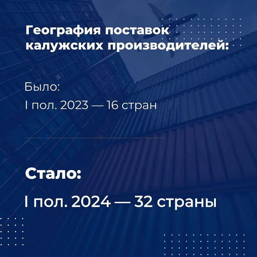 Как сообщил заместитель губернатора Калужской области Владимир Попов, за это время предприятия региона заключили 24 новых экспортных контракта в рамках различных нацпроектов, а объем поддержанного экспорта составил 6,6 миллиона долларов. Эти показатели вывели регион в десятку лидеров Центрального Федерального округа по эффективности внедрения Регионального экспортного стандарта 2.0.