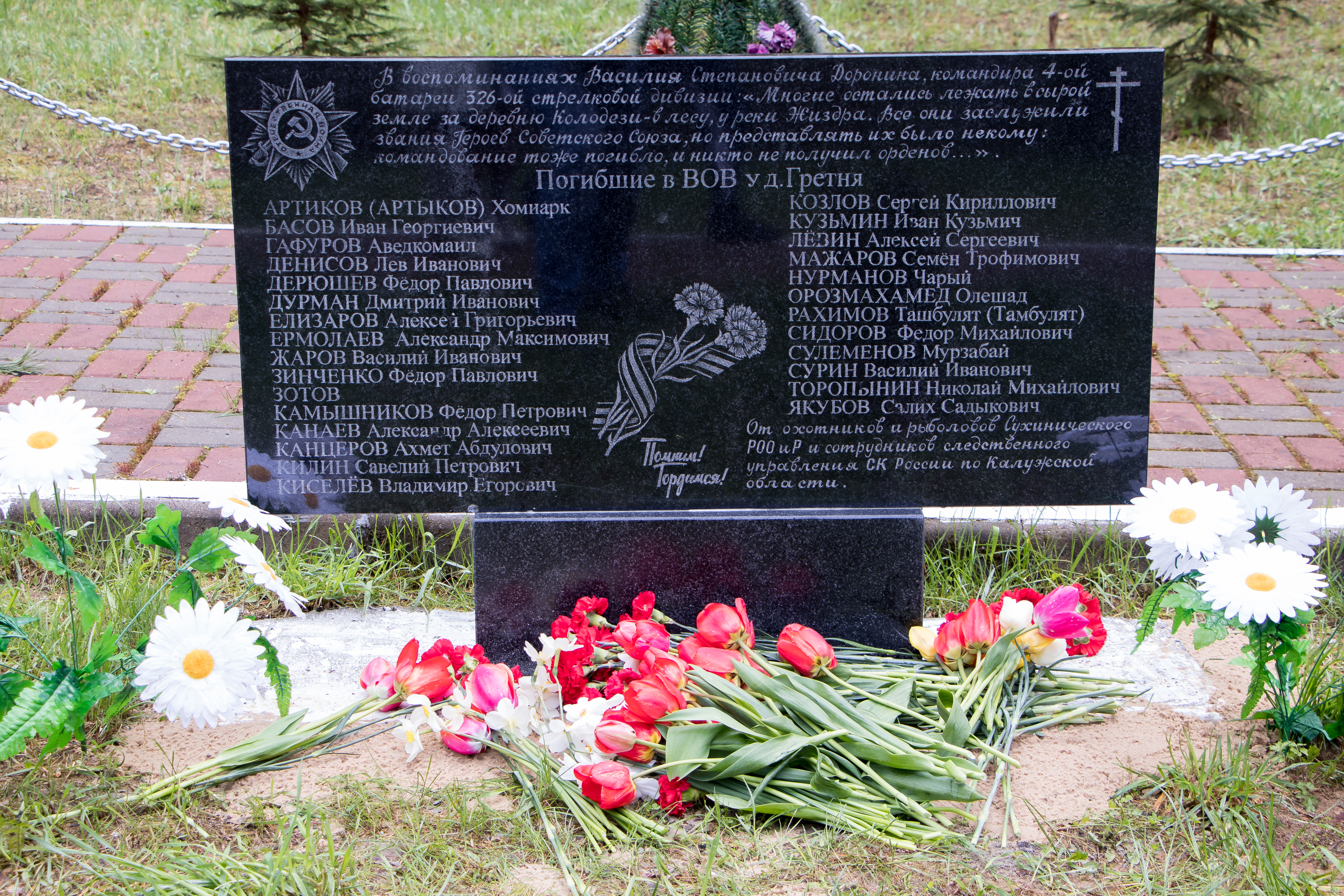 В год 75-летия Великой Победы коллектив районного отделения общества охотников совместно с сотрудниками следственного управления Следственного комитета России по Калужской области приняли решение увековечить память 28 бойцов-красноармейцев, погибших в годы Великой Отечественной войны на берегах рек Жиздры и Медведки.