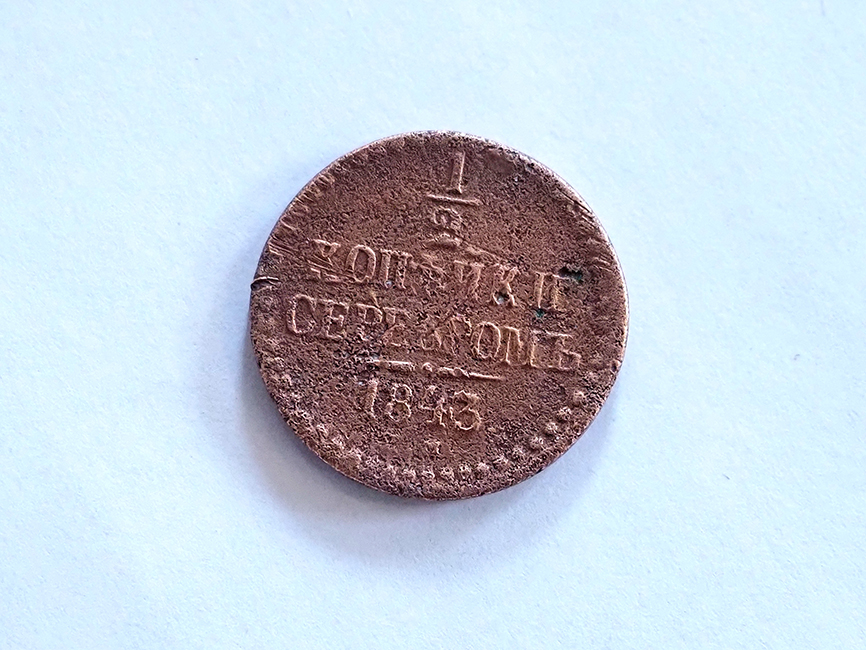 - Эту монету мы нашли на берегу у гидропоста. На ней монограмма государя Николая I и дата 1843 год. Монета оказалась знаковой! В этом году в Калуге начались инструментальные метеонаблюдения. С этого года ведет отсчет история калужской метеослужбы, - рассказывает Оксана Косарукова.