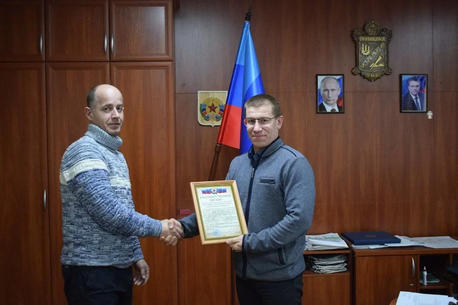 «Подводя итоги работы, от имени жителей Первомайска передал руководителю бригады Вячеславу Арцышевскому благодарственное письмо в адрес Генерального директора ГП «Калугаоблводоканал» Юрия Николаевича Петрушина и сотрудников предприятия за оказанную помощь в стабильном прохождении отопительного периода в нашем городе»,