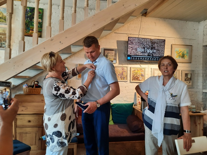 Руководитель отделения Союза женщин России вручила главе администрации медаль «Отцовская доблесть». Михаил Леонидович воспитывает 4 детей, старшая из которых на днях окончила школу с золотой медалью.