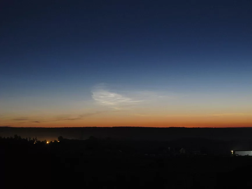 Иногда можно увидеть компактные серебристые облака – остатки размытых ветрами следов от стартовавших в светлое еще время ракет.
