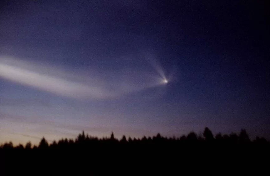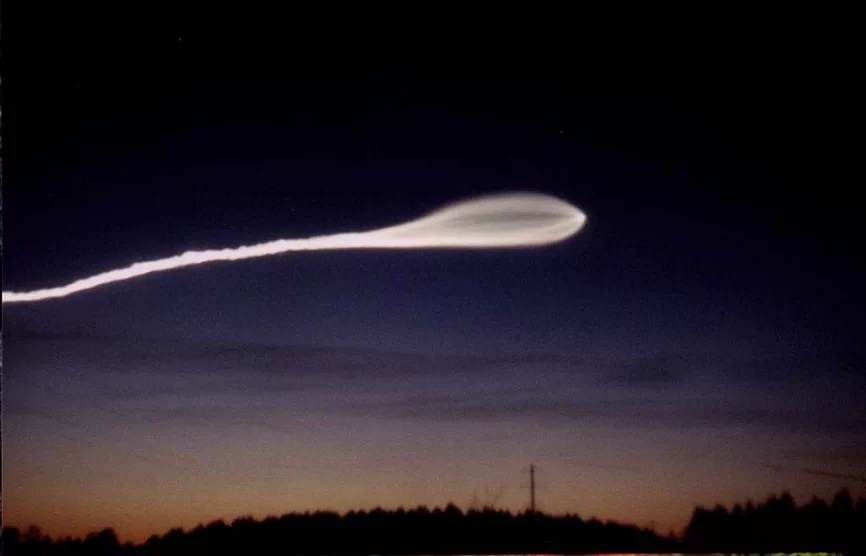 Иногда можно увидеть компактные серебристые облака – остатки размытых ветрами следов от стартовавших в светлое еще время ракет.