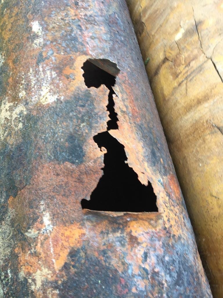 «Продолжаются работы на улице Генерала Попова. Достали трубу из-под земли и увидели такую картину. К сожалению, в подобном состоянии сильнейшего износа находится значительная часть сетевого хозяйства города.