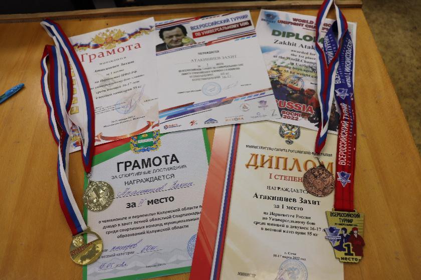 В этом году на мировое первенство в Сочи съехалось более четырехсот бойцов из Сирии, Марокко, Судана, Узбекистана, Таджикистана, Казахстана, Белоруссии, России и других стран. В составе нашей национальной сборной Захит Атакишиев выступал в весовой категории 55 кг возрастной группы 15-17 лет и стал победителем. Ранее он был признан лучшим на первенстве Центрального федерального округа, России и Европы. На счету Захита Атакишиева третья подряд победа на мировых чемпионатах. Вот какие звезды отечественного спорта учатся в Мещовском педагогическом колледже!