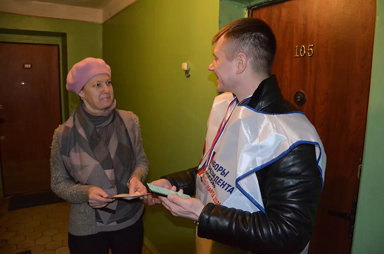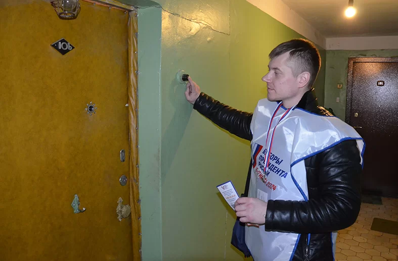 Работа обходчиков стартовала 17 февраля и с тех пор продолжается в ежедневном режиме. Члены участковых избирательных комиссий стремятся навестить каждый дом и каждую квартиру, не оставляя без внимания ни одного избирателя. Семен участвует в обходах с самого начала, занимается этим в свободное от основной работы время. Можно сказать, уже вторую неделю на ногах, но бодрости духа и энергии не теряет.Есть в деятельности обходчика свои тонкости. Работают они не абы как, а в соответствии с определенным графиком. Посещения квартир фиксируются в мобильном приложении, как и данные о проживающих там избирателях. За два часа удается обойти около 50-70 квартир. Случается, хозяева отсутствуют дома. В этом случае в мобильном приложении ставится соответствующая отметка и позже обходчику придется вернуться сюда еще раз.