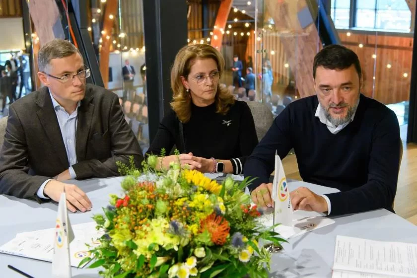 Генеральный директор компании Максим Гончаров вручил губернатору области Владиславу Шапше пакет проектных документов на строительство более чем 50 километров цементно-бетонных дорог в Ферзиковском и Малоярославецком районах.